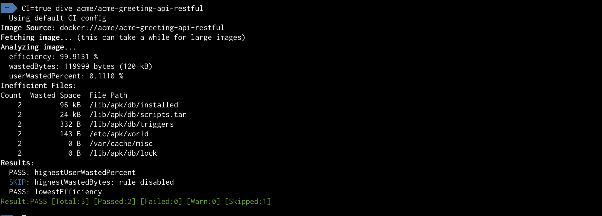 dive build -t acme/acme-greeting-api-restful .