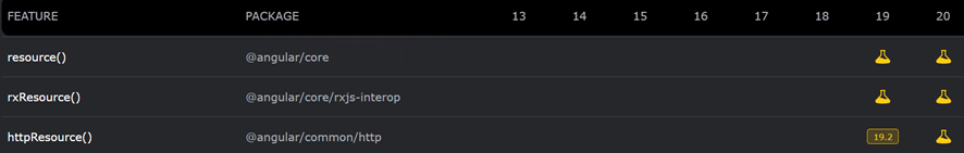 En la versión 20 de Angular, la nueva API de Resource sigue siendo experimental. Esto implica que la forma de usar esta funcionalidad podrá modificarse antes de volverse estable.