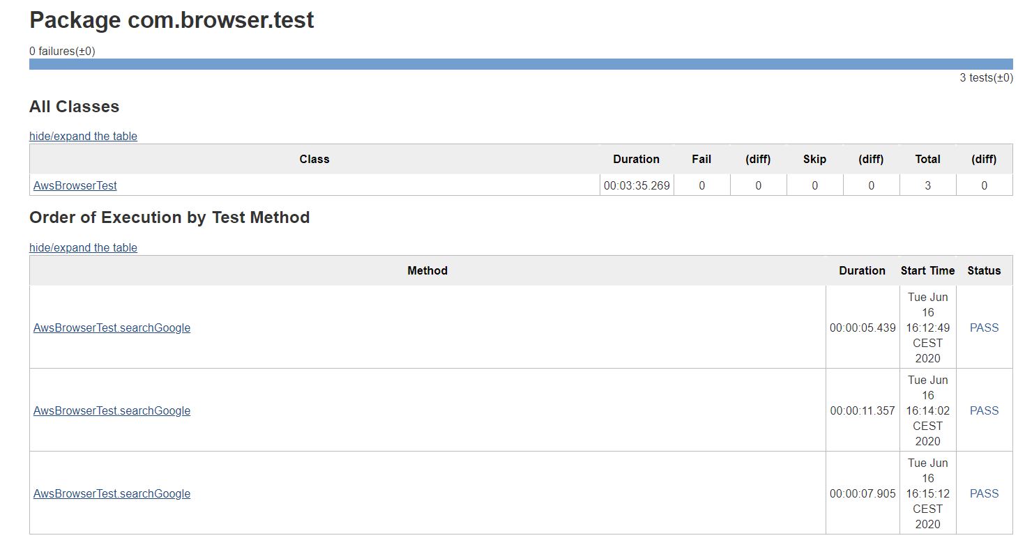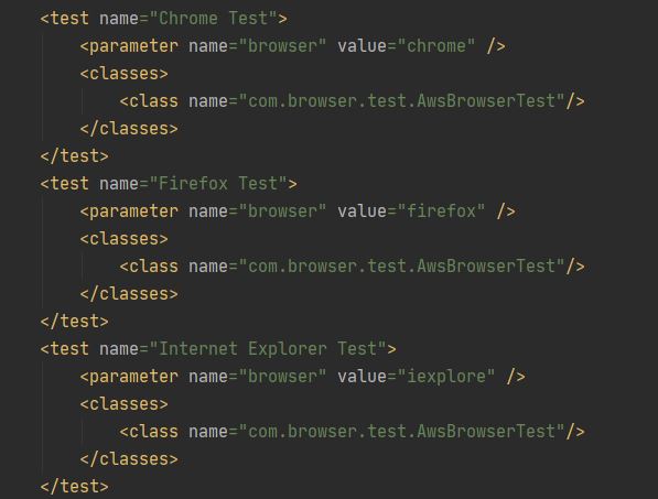 El proyecto contiene una suite de ejecución de TestNG el cual se realiza la llamada al test un total de tres veces, indicando en cada uno de ellos, como parámetro, el navegador con el que queremos hacer la prueba.