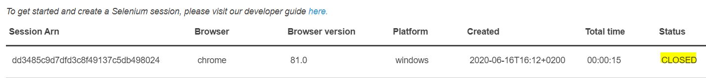 Una vez finalice la ejecución en curso para el navegador seleccionado, cambiará a estado CLOSED.