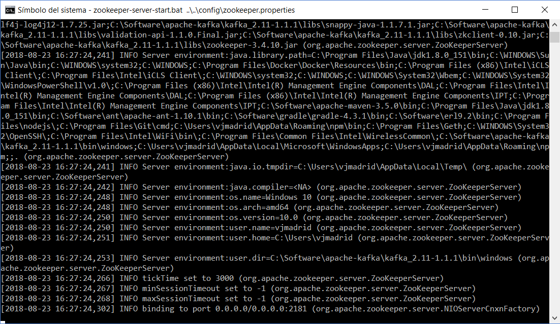 - En caso de Windows recordar establecer una ruta apropiada (Por ejemplo : "C:/apache-kafka/kafka2.11-1.1.1-cluster1/zookeeper")