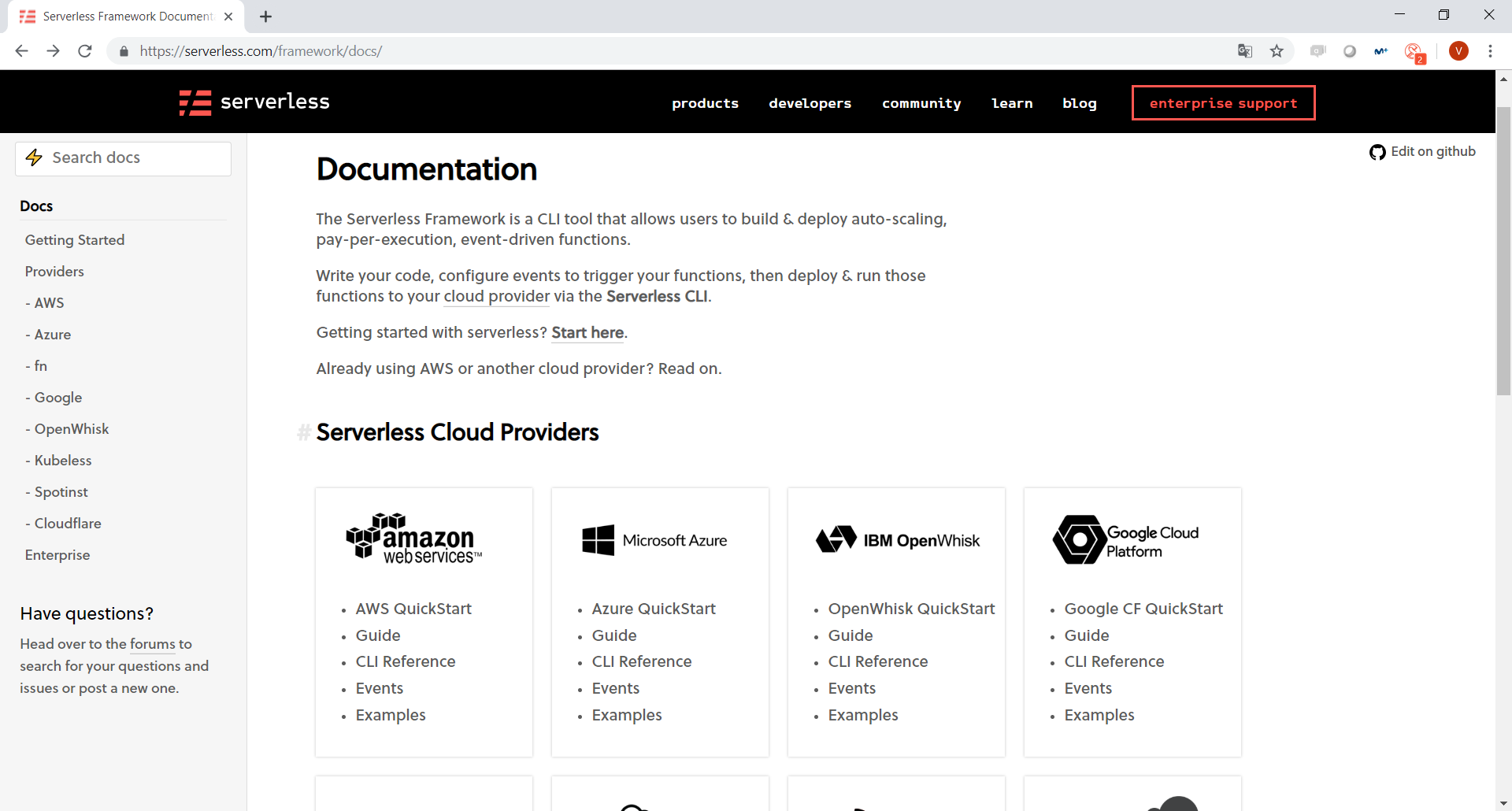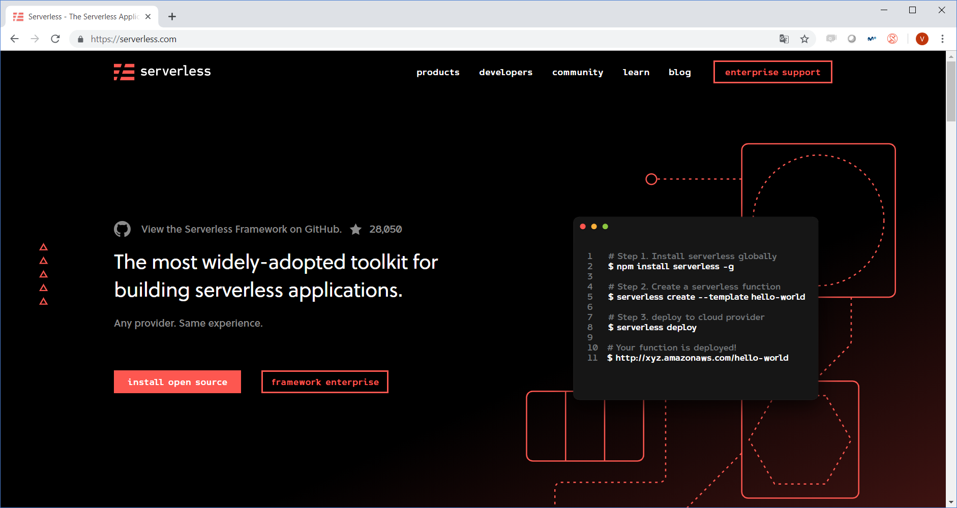 Se trata de una Herramienta CLI Open Source que proporciona comandos para facilitar ciertas operativas a la hora de realizar la construcción, configuración, implementación y despliegue de funciones serverless en varios proveedores (Amazon AWS, Microsoft Azure, Google Cloud, IBM Open Whisk, Kubeless, etc.).