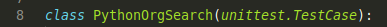 Un TestCase se crea mediante la subclase unittest.TestCase. Creamos nuestra clase de Test y la definimos como unittest: