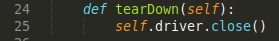 El último método es el método de tearDown, en el cual cerraremos el driver utilizado:
