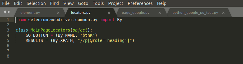 Creamos la clase "locators.py" la cual tendrá el siguiente aspecto: