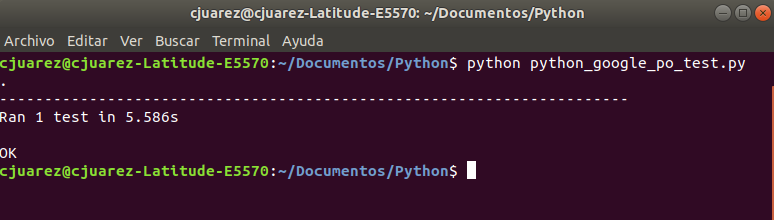 Ejecutamos el test, nuevamente en un Terminal de Linux: