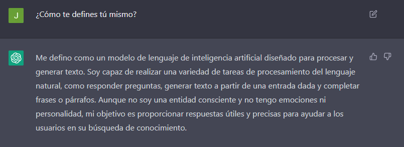 Vamos a preguntar a Chat GPT que se defina él mismo: