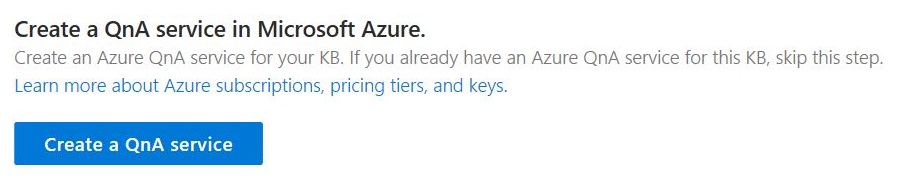 Primero, pulsamos el botón Create a QnA service para dirigirnos al portal de Azure y asignarle suscripción, capa de precios y otros valores de configuración.