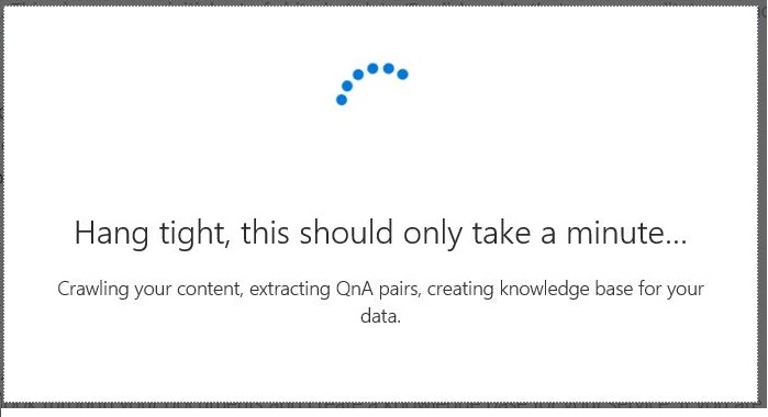 Una vez hecho esto, pulsaremos Create en la parte de debajo de la pantalla para comenzar el despliegue del servicio QnA Maker en nuestra suscripción. Debemos esperar aproximadamente un par de minutos.