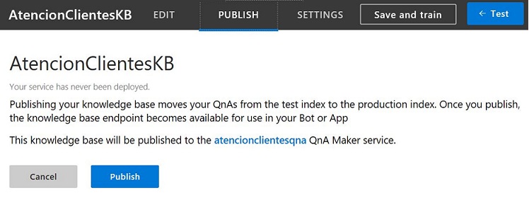 En este punto, ya hemos publicado la Knowledge Base. Dejaremos abierta en el navegador esta ventana porque la necesitaremos más adelante.