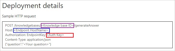 Cogemos los valores obtenidos del Publish en QnA Maker cuando tenemos la confirmación desde la HTTP request de Postman, como vemos en la imagen: