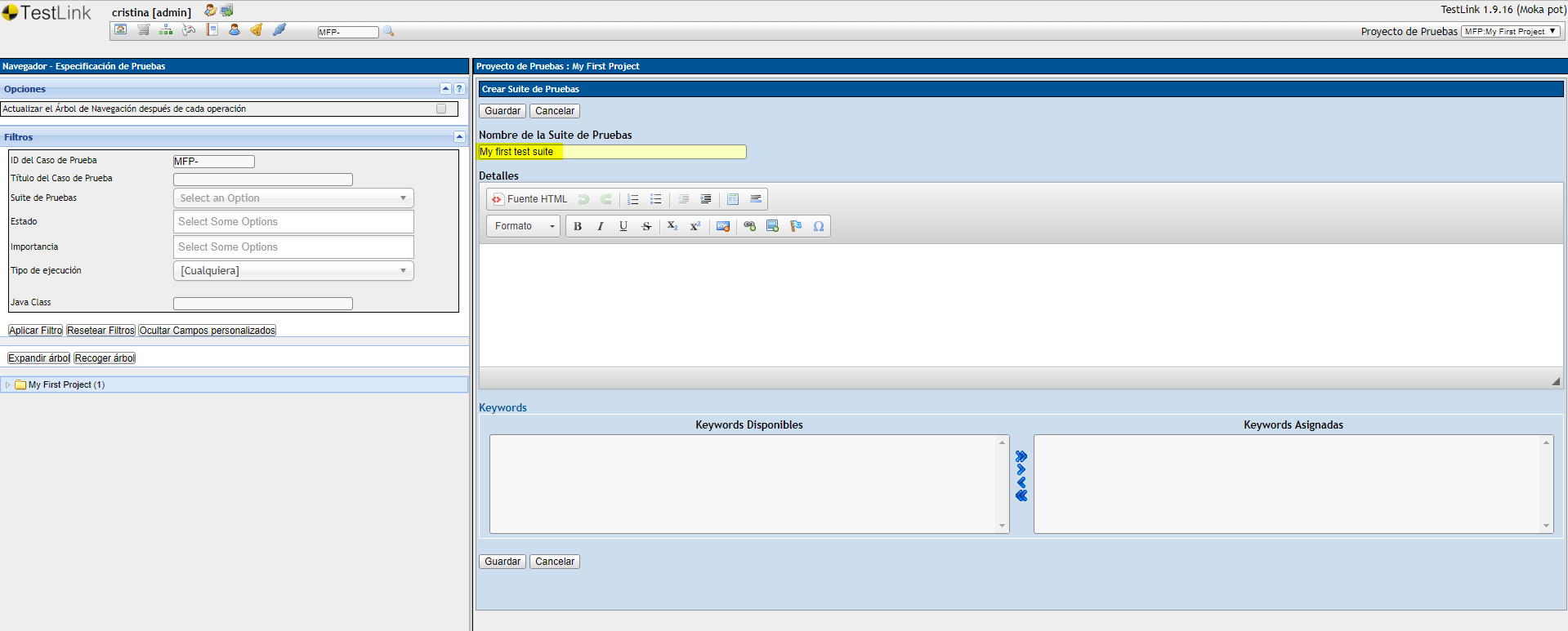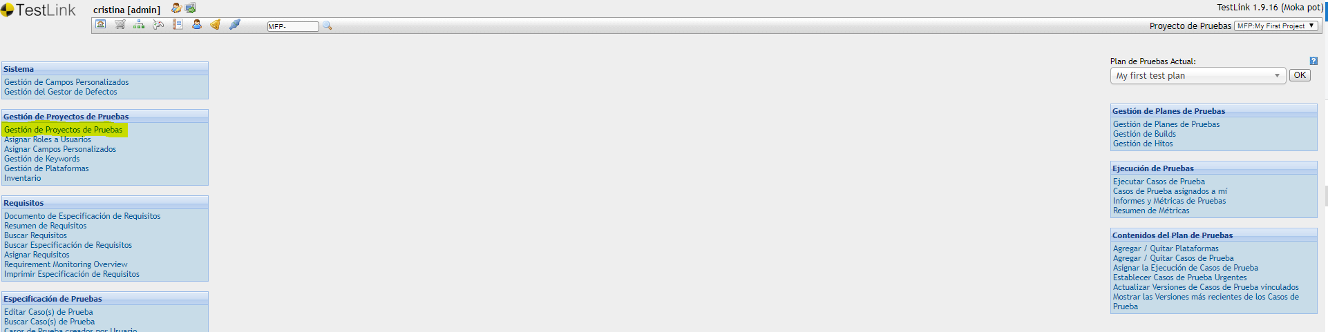 Vamos a ver como crear y configurar un proyecto en TestLink desde el inicio :