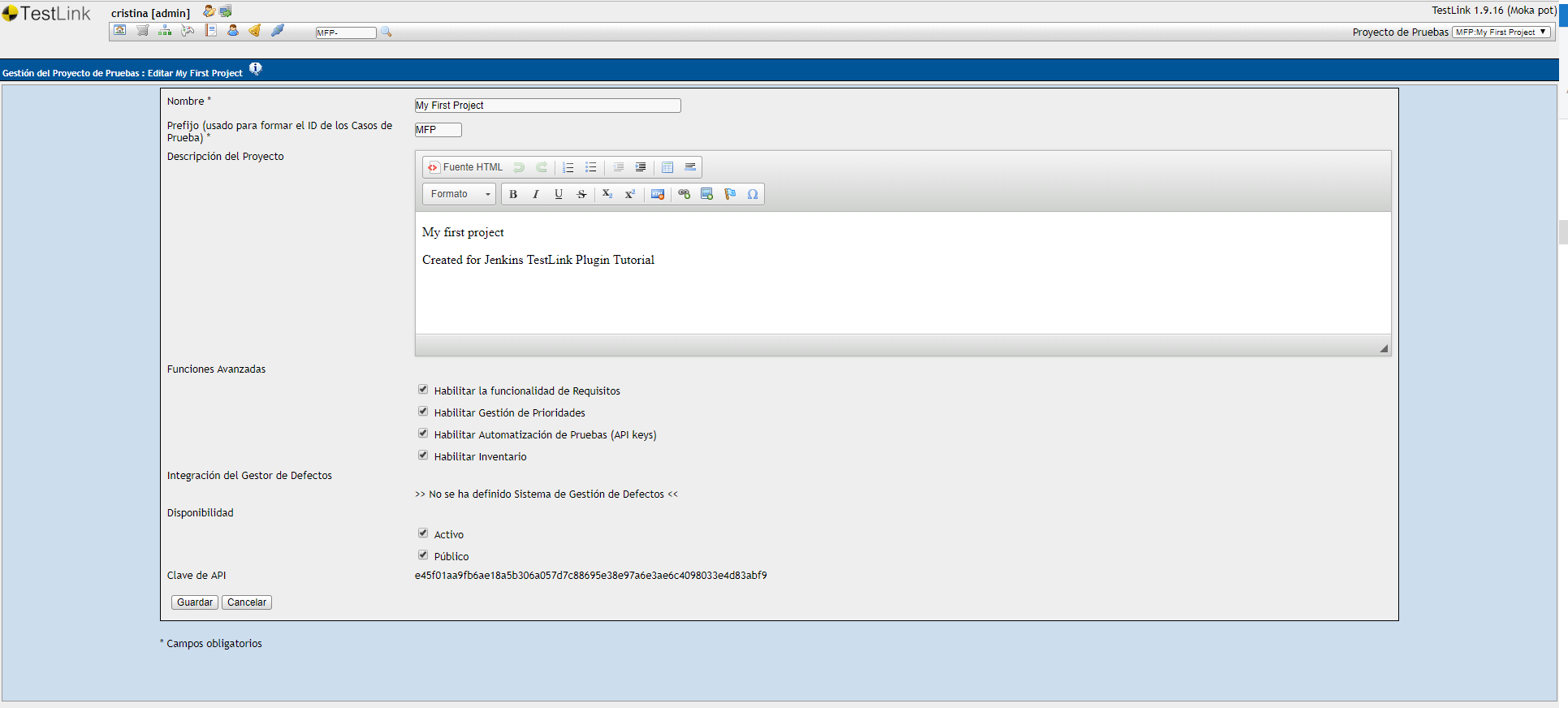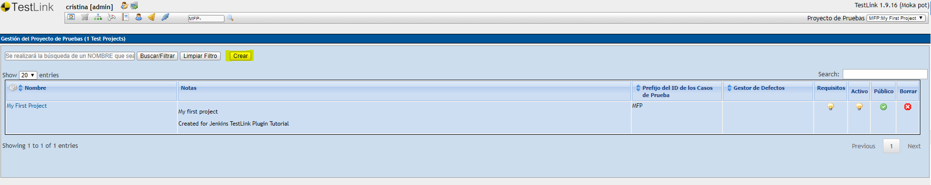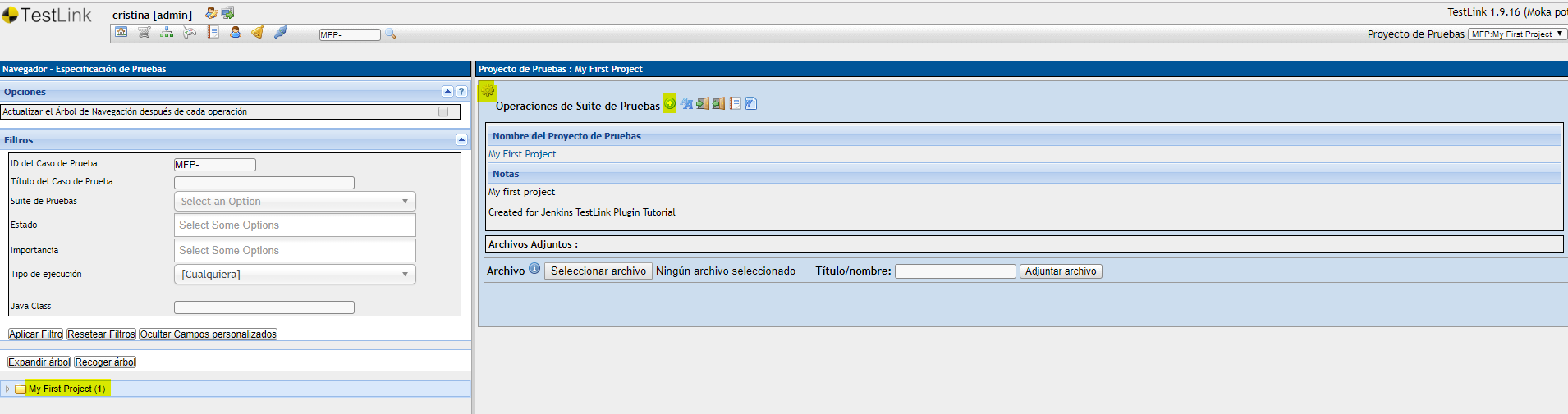 Ya tenemos preparado el proyecto en TestLink para vincularlo con el proyecto automatizado en Jenkins.