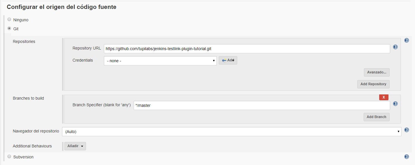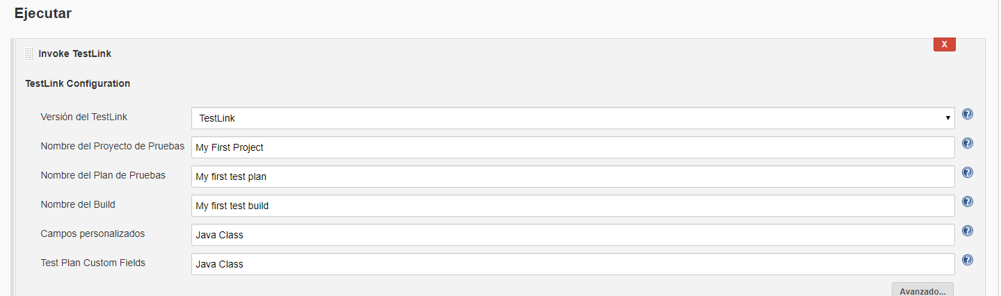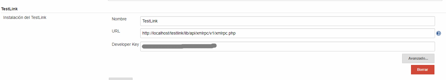- Versión de TestLink : Aplicará la establecida en la configuración de Jenkins.