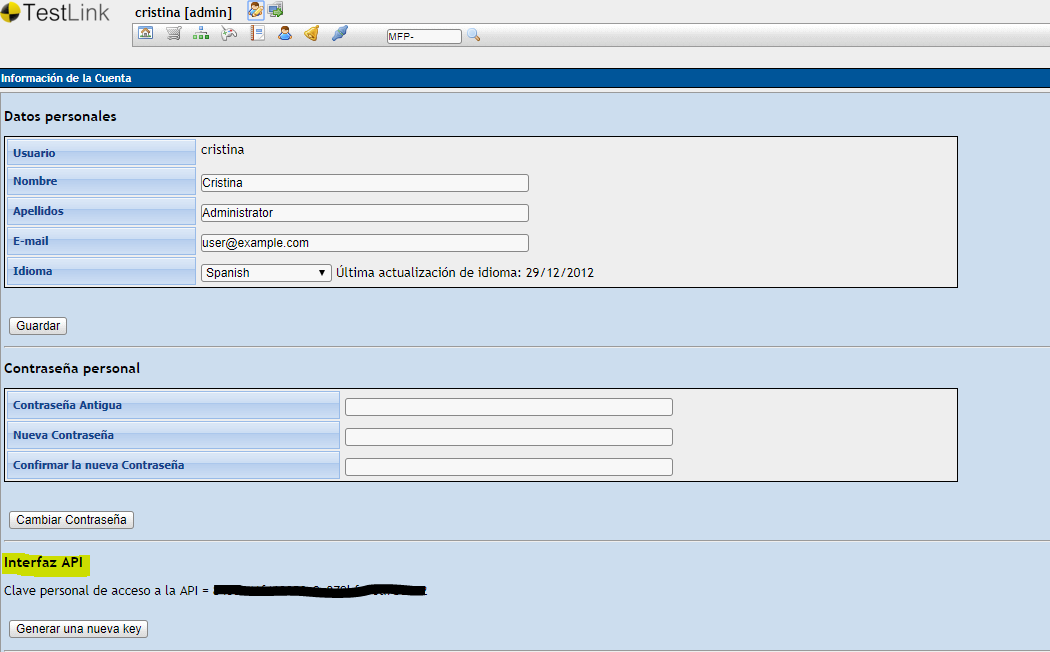 El valor "Developer Key" se obtiene accediendo a Mi Configuración, dentro de Interfaz de API. Podemos regenerar una nueva key si fuese necesario.