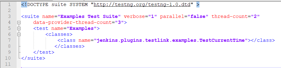 Este es el código fuente del fichero "suite.xml" del proyecto: