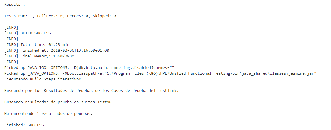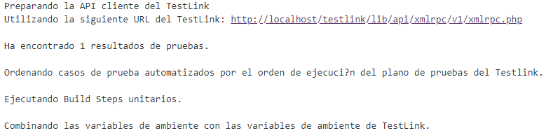 Ejecutamos el Job de Jenkins. Si hemos configurado correctamente todos los parámetros, Jenkins accederá a TestLink y recogerá todos aquellos casos de prueba a ejecutar: