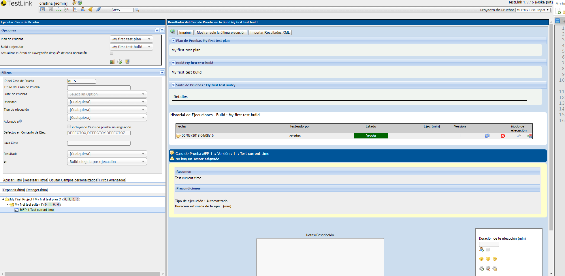 Si accedemos a TestLink veremos como los resultados han sido volcados en el caso de prueba de forma automática: