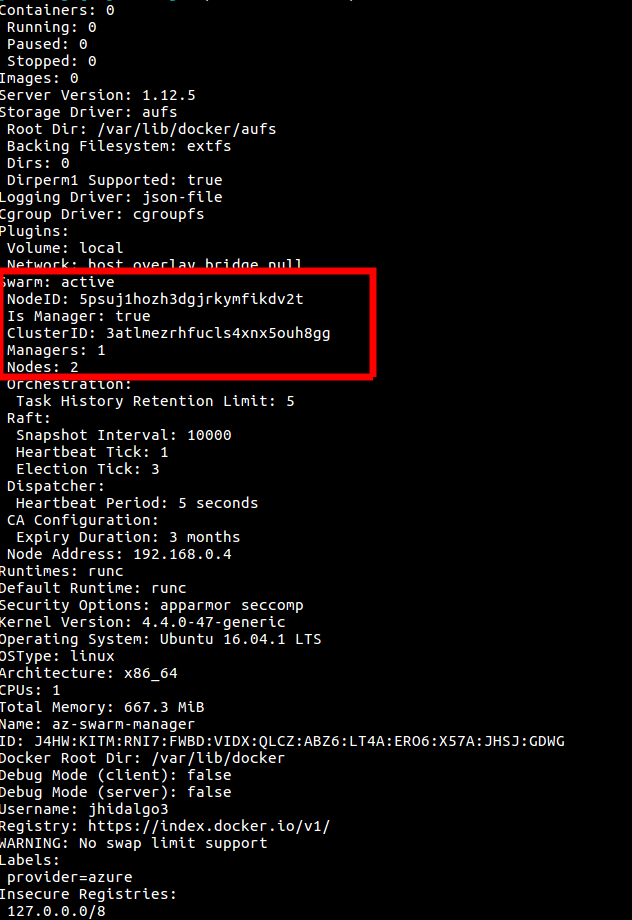 Al ejecutar “docker info” ya debería aparecer la información del cluster: