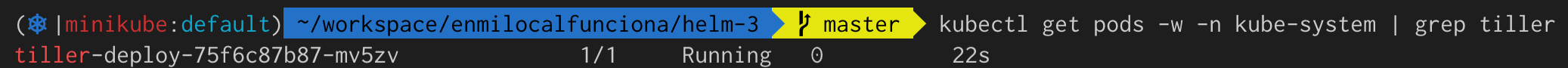 kubectl get pods -w -n kube-system | grep tiller