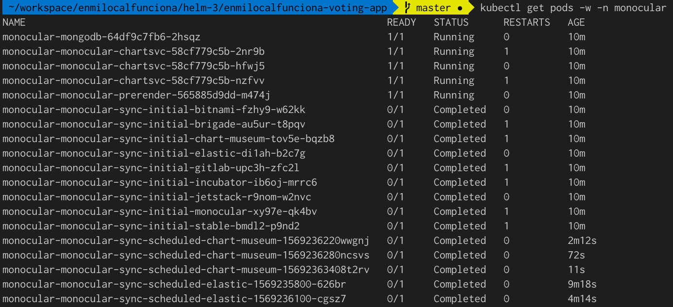 kubectl get pods -w -n monocular