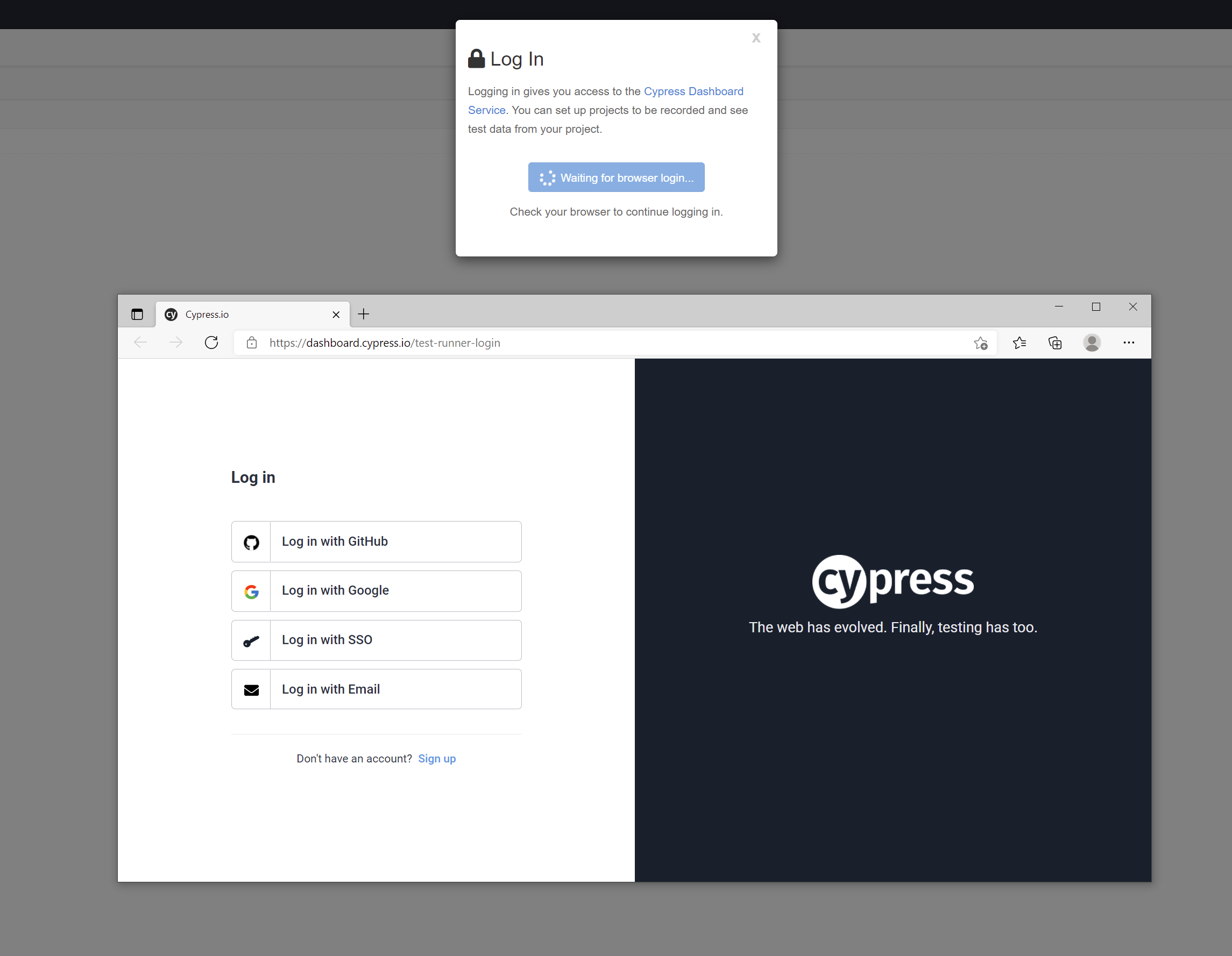 Ejecución del test en Cypress