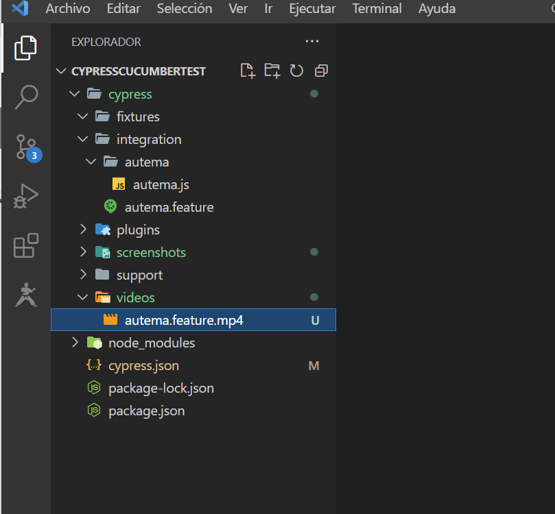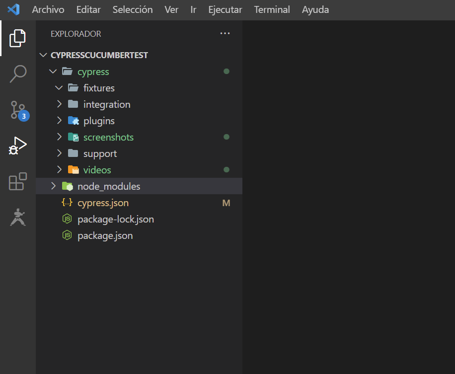 Al seleccionar la carpeta, se nos creará automáticamente la estructura del proyecto en Cypress. Abrimos el directorio con cualquier editor de programación (recomendado Visual Studio Code):