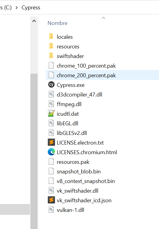 Una vez descargado, descomprimimos el zip dentro del directorio convenido. Por ejemplo en C:\Cypress