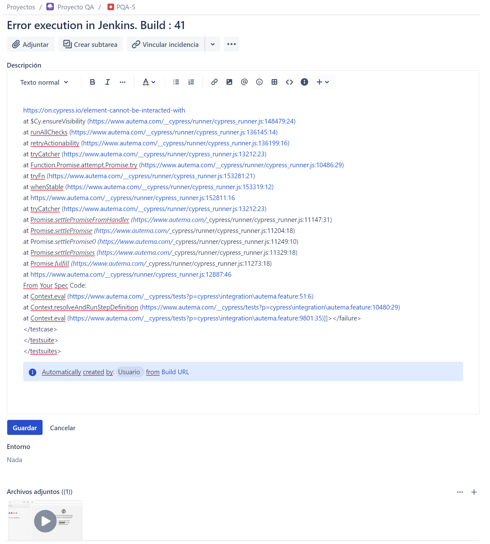 jiraUploadAttachment file: workspace + '/cypress/videos/autema.feature.mp4', idOrKey: response.data.key