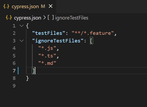 Ahora, dentro del fichero "cypress.json" especificamos la configuración siguiente: