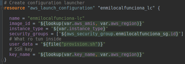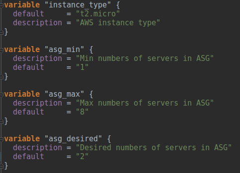 Variables usadas para configurar el ASG: