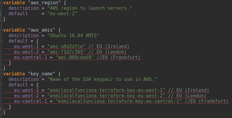 El fichero variables.tf contiene la definición de las variables que vamos a utilizar en el ejemplo.