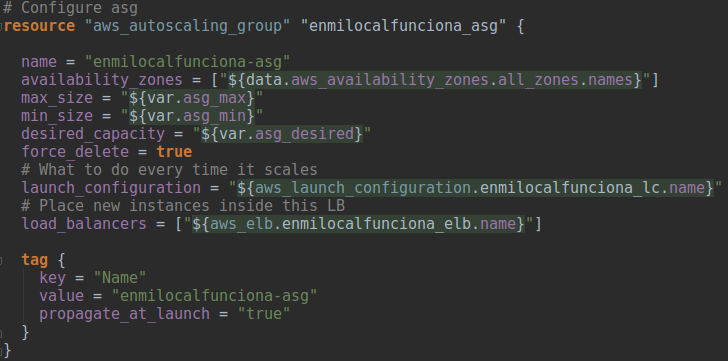 La última pieza que necesitamos configurar es el ASG: