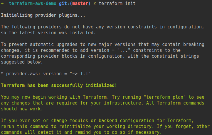 Inicializamos el directorio de trabajo con terraform init: