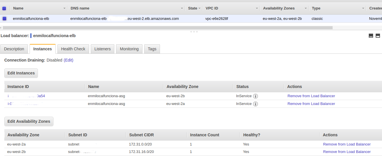 Lo podemos comprobar en la consola de AWS, en la sección de EC2 y dentro de load balancers: