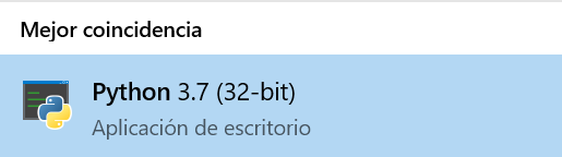 Para poder usar Python desde la consola de Windows, necesitaremos agregarlo al PATH del sistema. Para ello, en la barra de búsqueda empezamos a escribir el nombre de Python hasta que nos aparezca el icono de Python seguido de la versión que hayamos instalado: