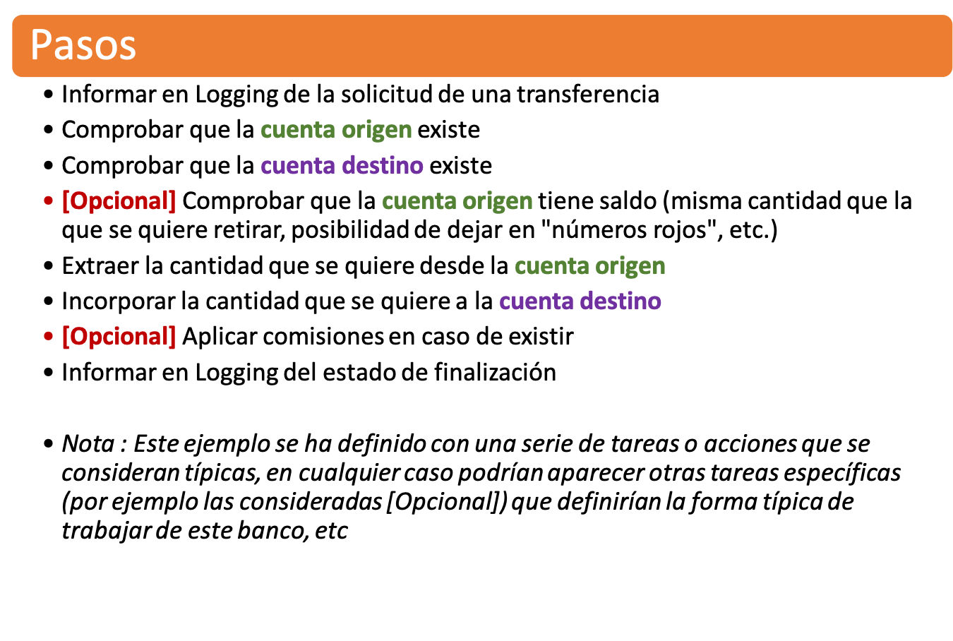Ejemplo "Crear una Transferencia Bancaria genérica"