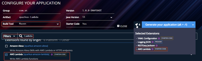 -DarchetypeArtifactId=quarkus-amazon-lambda-archetype \