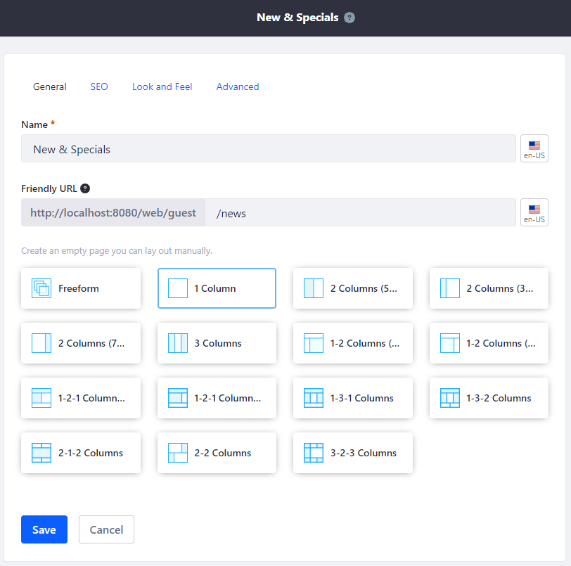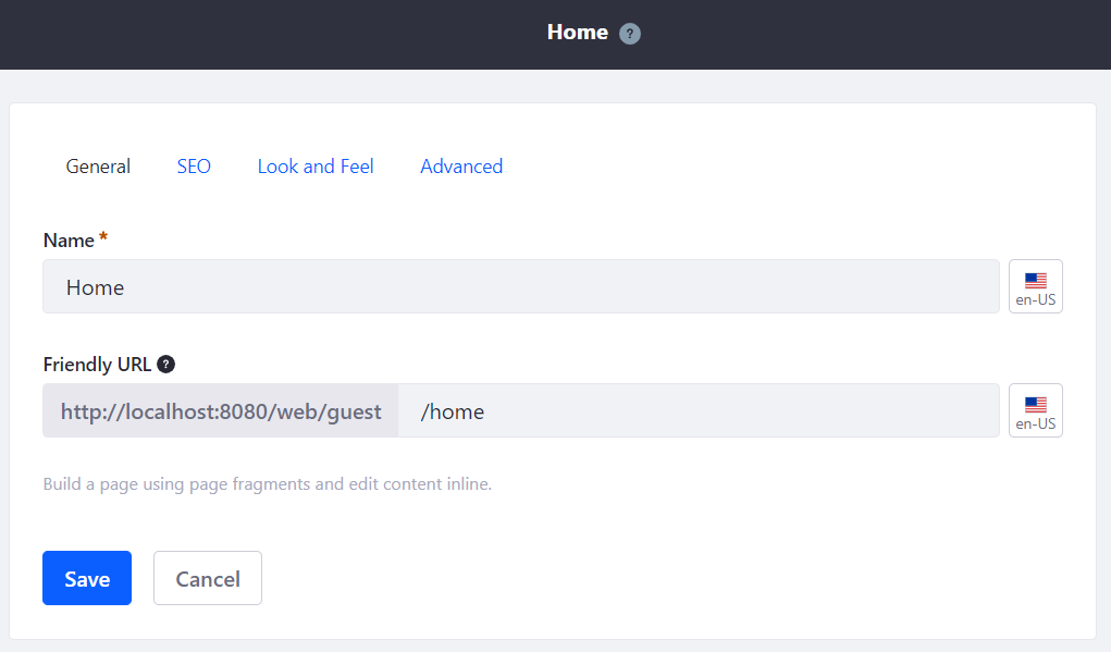 Ambas tienen un nombre y ‘friendly url’ (ambos internacionalizables), configuraciones de SEO, look and feel, etc. En este sentido destacar que ambos tipos de página están “afectadas” por el tema. En una página tipo widgets el cuerpo de la página lo constituye la zona donde se aplica el layout, mientras que en una content page el cuerpo corresponde a la instanciación secuencial de los fragmentos pero, evidentemente, el resto es común: