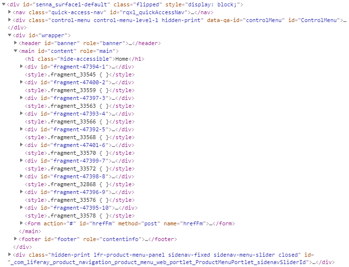 - Su información no se puede consultar mediante API, por ejemplo, no hay servicios publicados en /api/jsonws. Notar que este hecho hace que el uso de fragments vaya en contra de la explotación como headless.