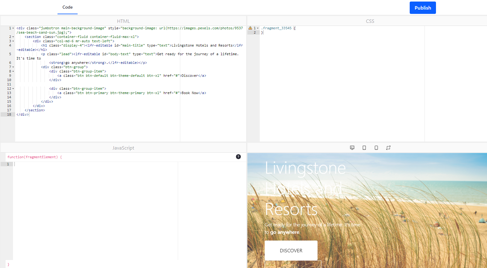 Para crear fragments se puede utilizar el editor que Liferay aporta, el cual recuerda a jsfiddle: