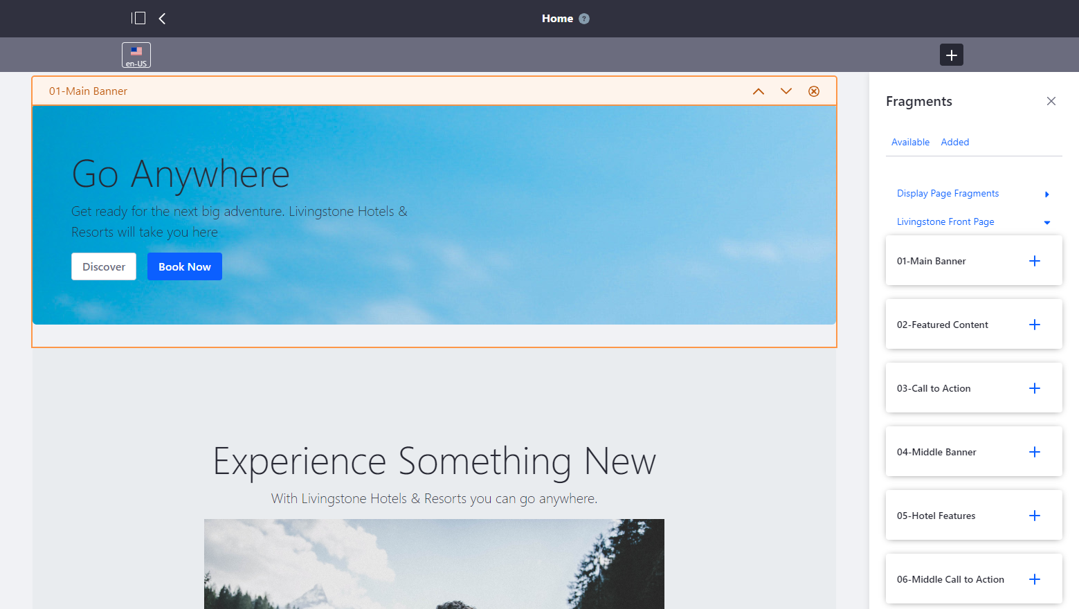 Una pagina de contenido se construye mediante la aplicación secuencial de fragmentos. Cuando apareció la funcionalidad de Fragments en Liferay 7.1 la página de contenidos era básicamente la aplicación secuencial de fragmentos en una edición donde no se tenía en cuenta el tema:
