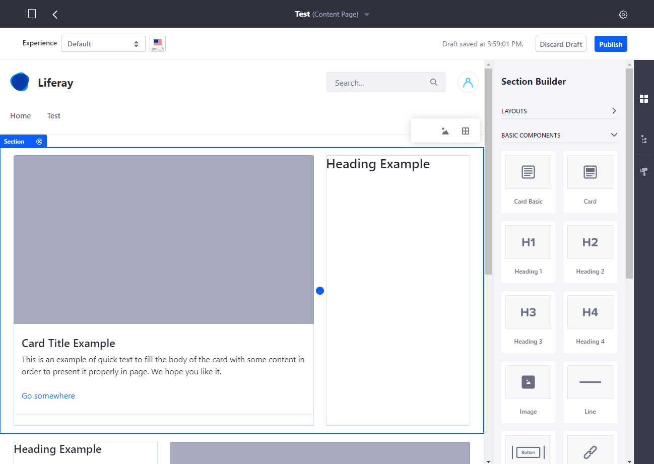 En Liferay 7.2 se ha potenciado esta funcionalidad y ahora se pueden crear secciones y componentes (recordando mucho a otros CMS como Magnolia), pero aún así, sigue básicamente siendo una secuencia de fragmentos. Por ejemplo, Liferay aporta una serie de elementos llamados Layouts (¡Layout de páginas de contenido!) que sirven para disponer la composición de elementos en la página. Sin embargo, por el momento, no se pueden crear nuevos layouts sino solo utilizar los que vienen de base, ni tampoco subdividir las secciones definidas por los layouts (de forma similar a como se hacía con el ‘clásico’ Nested Portlets).