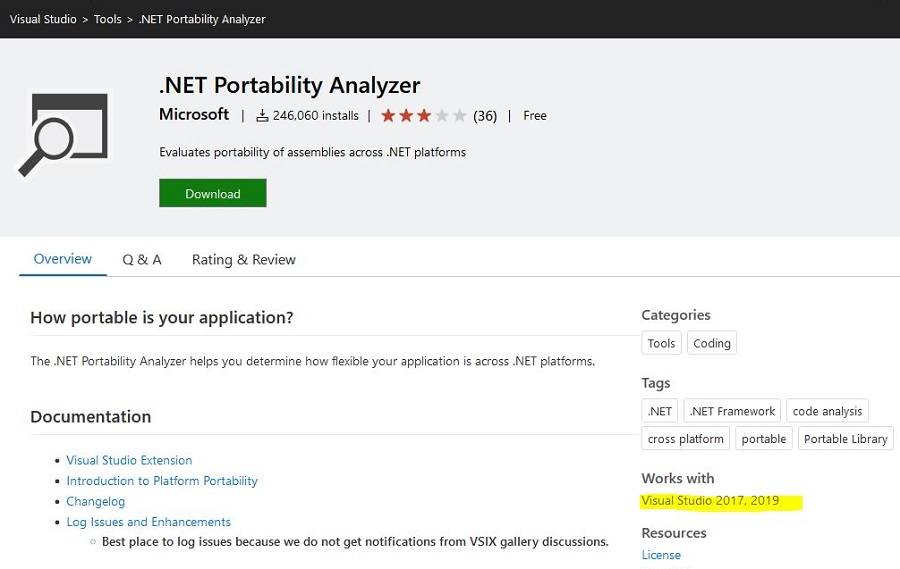 Ref: https://docs.microsoft.com/en-us/dotnet/standard/analyzers/portability-analyzer
