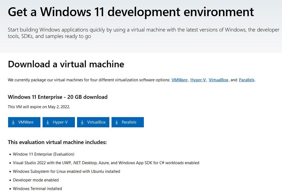 La VM que ofrece Microsoft esta disponible para las siguientes plataformas: