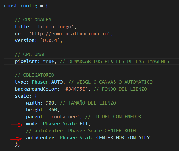 Antes de comenzar, vamos a indicar un par de propiedades para centrar el juego tanto vertical como horizontalmente en el navegador y hacer que escale al ancho completo de la pantalla.