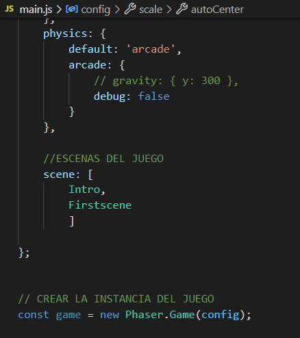 Al hacer "this.scene.start('Firstscene');" lo que hacemos es quitar la escena "Intro" y lanzar la escena del juego "Firstscene".