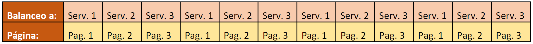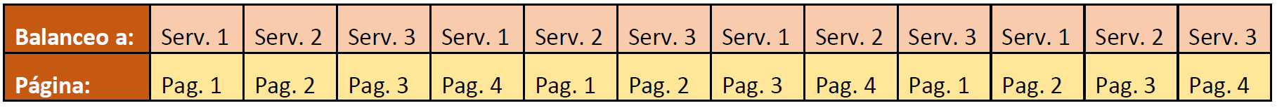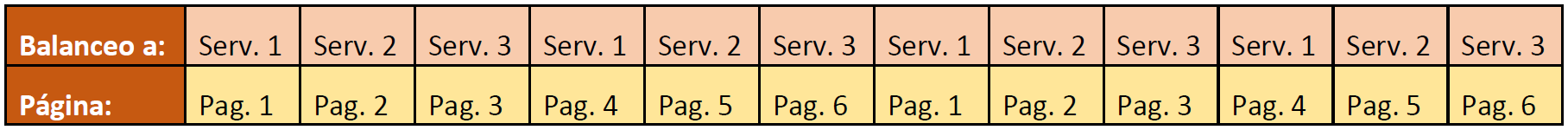 Notar que en este caso el servidor 1 siempre atiende peticiones de la página 1 y 4, el servidor 2 siempre atiende peticiones de la página 2 y 5, y el servidor 3 siempre atiende peticiones de la página 3 y 6.