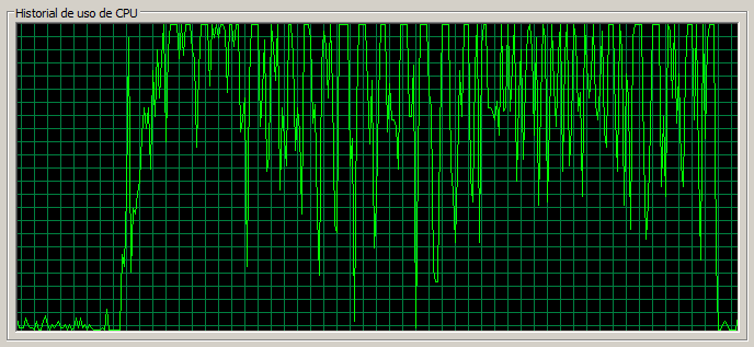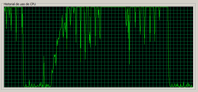 En este caso vemos como la CPU llega al 100% en casos puntuales, pero en general se encuentra bastante holgada.