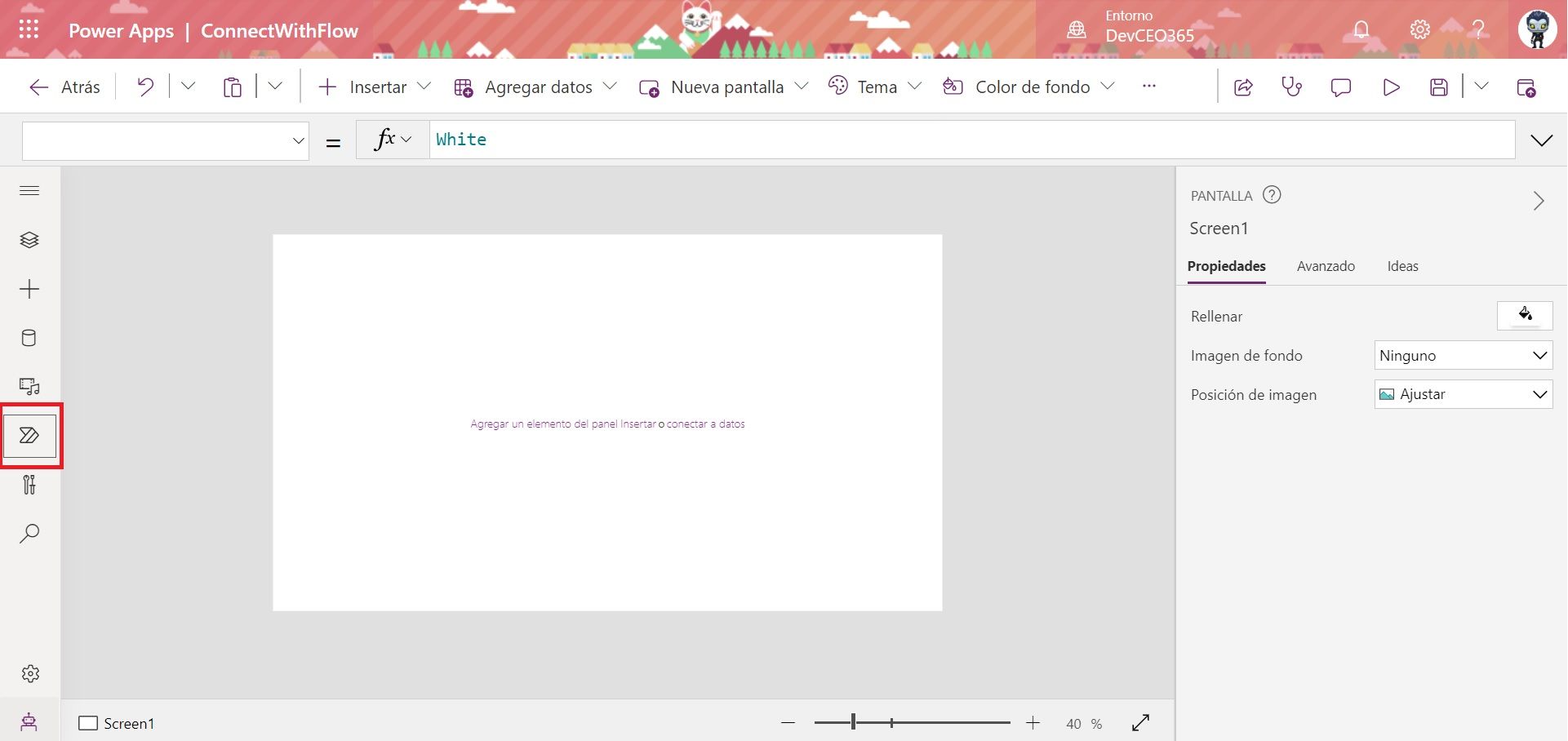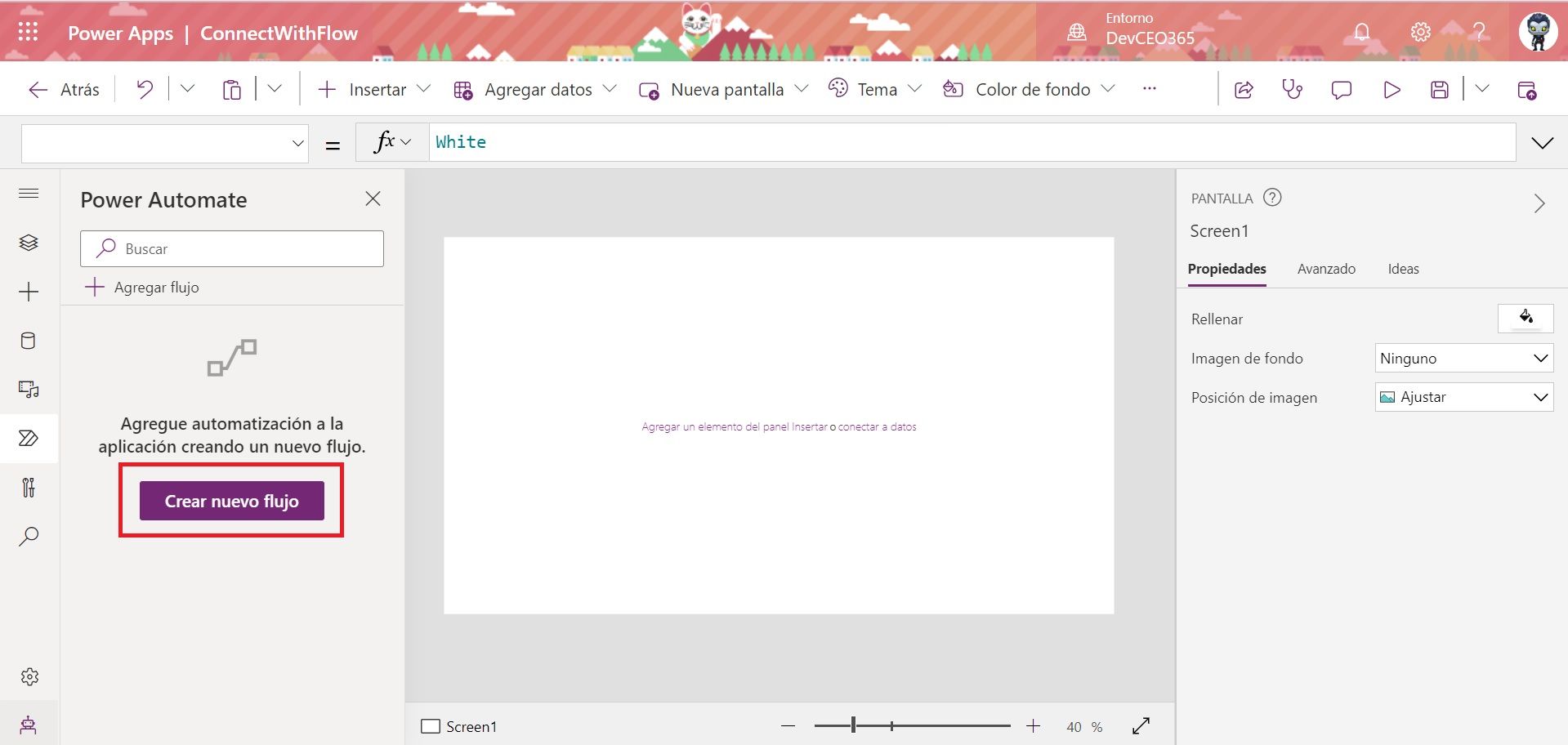 Este panel está habilitado por defecto para todos los usuarios y es el método recomendado por Microsoft para trabajar con Power Automate desde Power Apps.